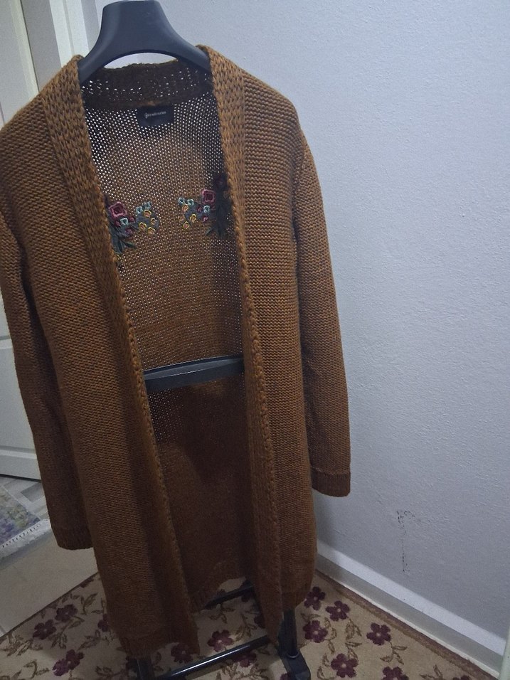 Kahverengi uzun bayan hırka