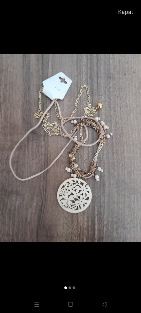 Uzun bej renkte, boncuk ve nakış detaylı bohem tarza uygun kolye, günlük kullanım için idealdir.