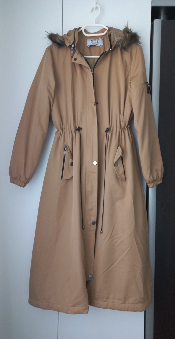 fermuarlı ve düğmeli uzun kadın mont yırtığı defosu yok