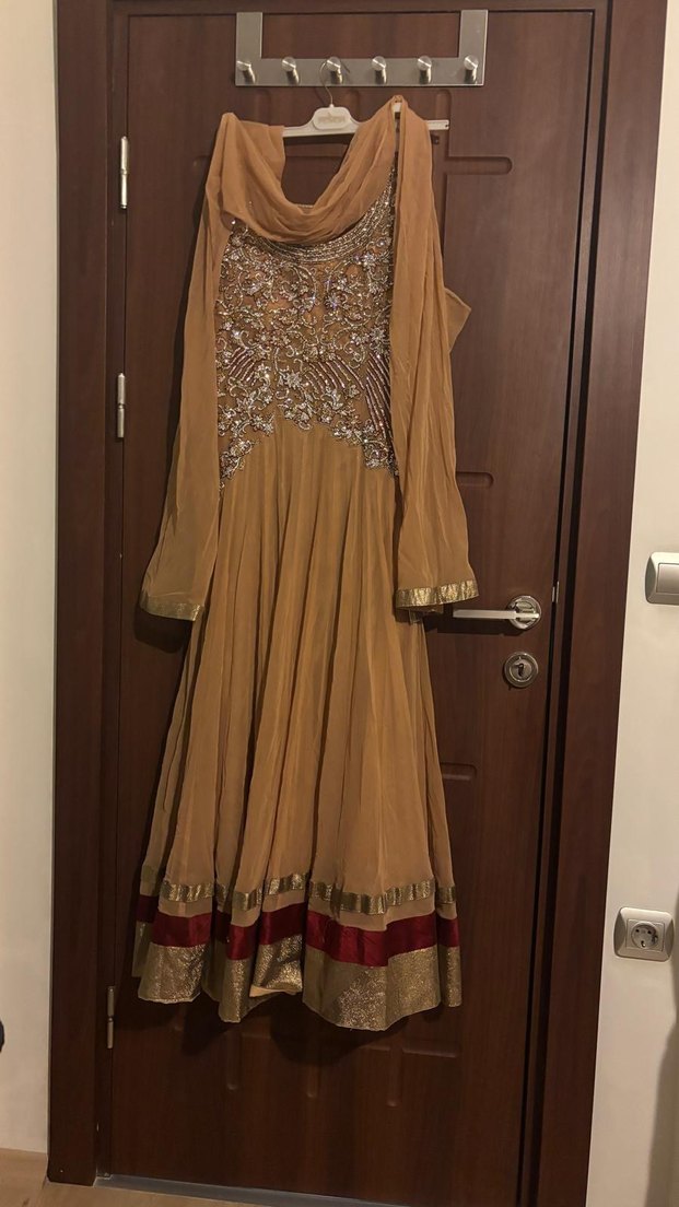 Uzun Bej Nakışlı Kadın Elbisesi