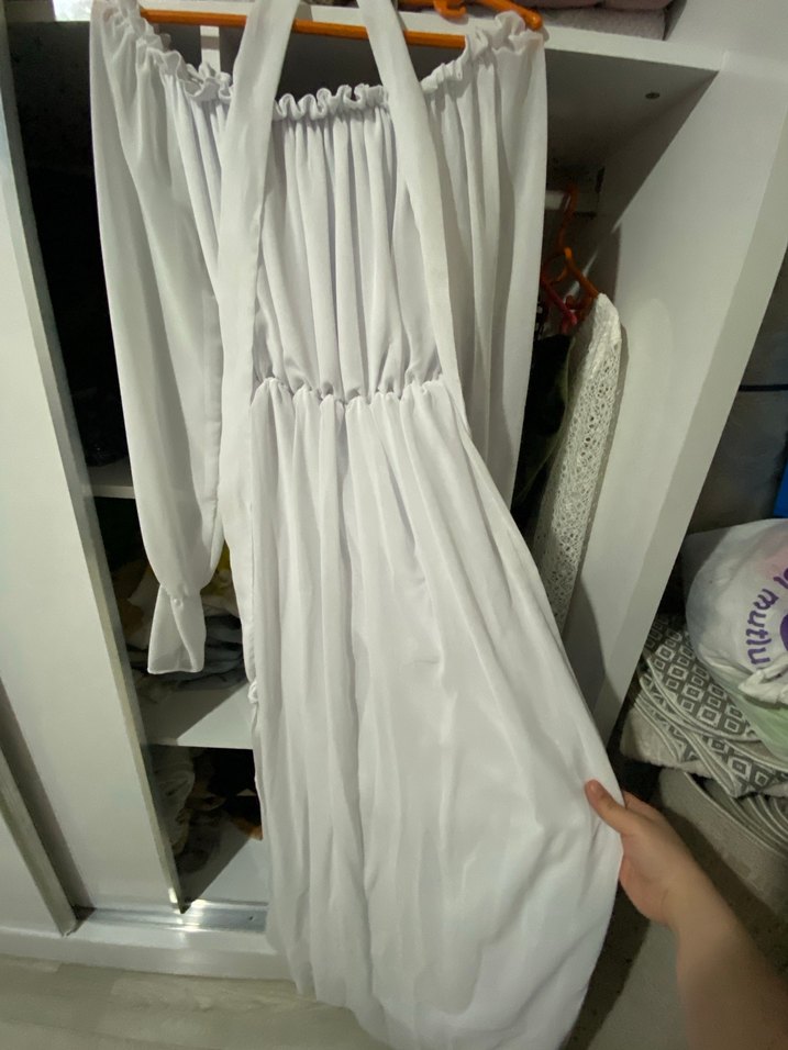 Uzun, askılı ve bol kesimli beyaz hamile elbisesi. Desensiz sade tasarımı ve yumuşak kumaşıyla rahat kullanım sağlar. Cinsiyet partisinde bi kere giyildi yırtığı vs yoktur.