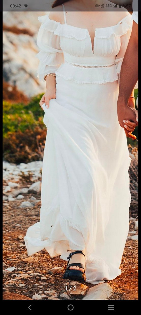 Uzun Beyaz Bohem dış çekim elbise