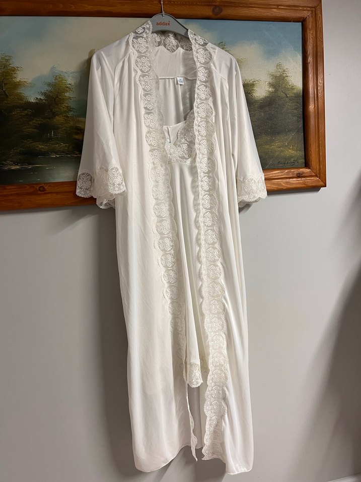 Uzun Beyaz Bohem Nakışlı Kadın Sabahlık kısa ve uzun gecelik