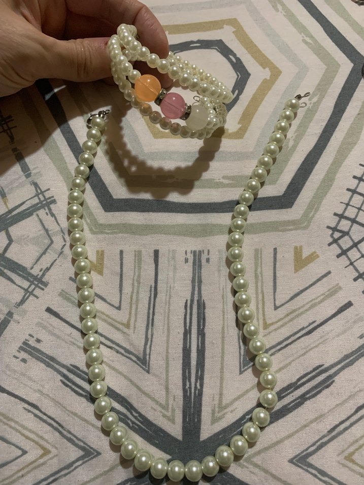 Uzun Beyaz Boncuklu Bohem Kolye ve bileklik