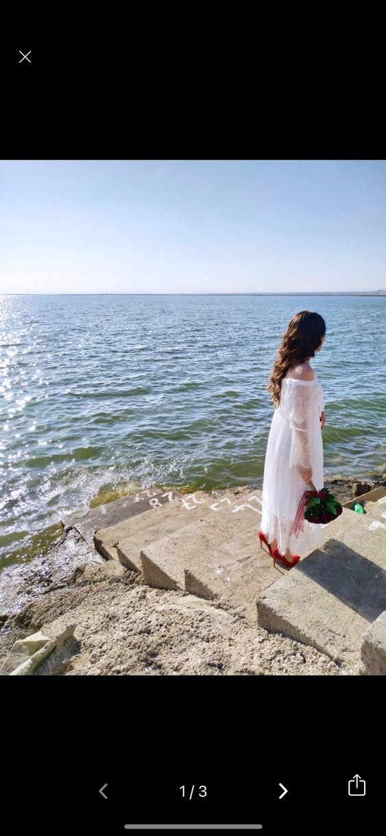 Omuzları açık, uzun kollu ve bol kesim bohem tarzı beyaz gelinlik, plaj ortamları için uygundur nikahımda giydim defosuzdur bir kez tek giyildi