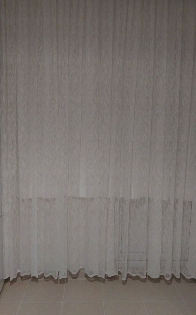 Düz, bej renkte ve hafif gri tonlu geleneksel perde, ışığı yumuşak şekilde süzen dokusuyla öne çıkar. En 180 boy 240