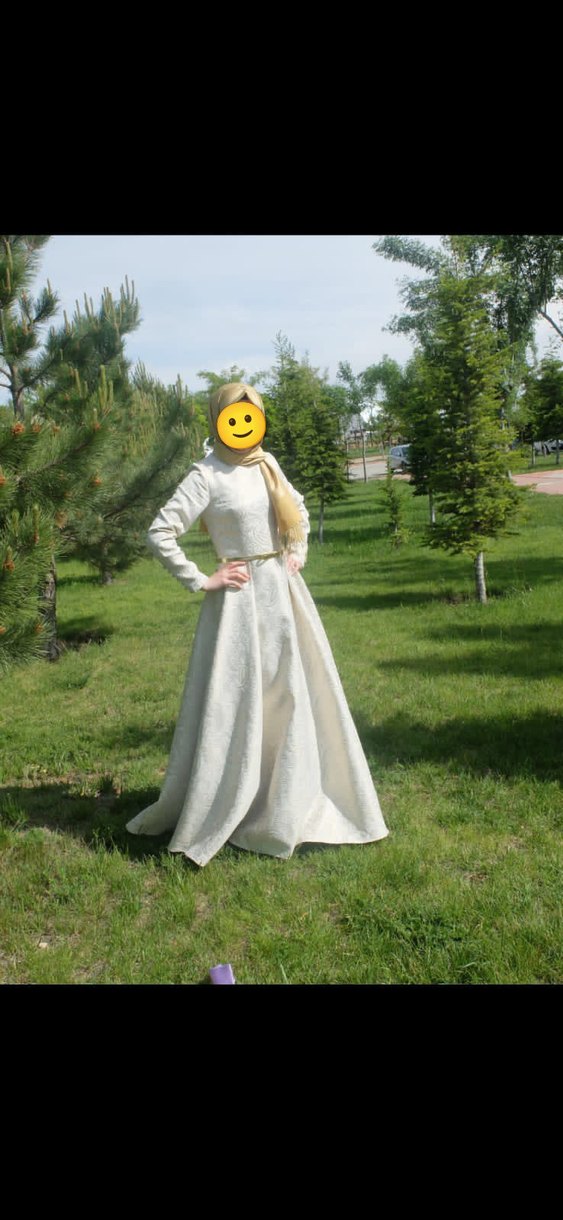 Uzun Beyaz Drapeli Tesettür Elbise