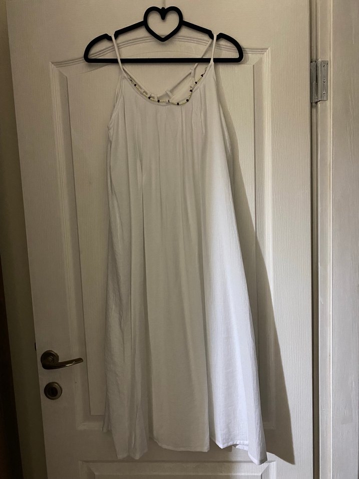 Beyaz, halter yaka, kadın elbise hiç giyilmedi.