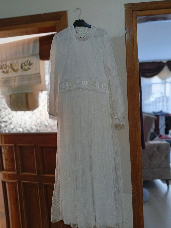 sadece nikahımda giydim hiçbir deformesi yoktur yerim olmadığı için uyguna veriyorum L beden yazıyor Fakat ben S beden olarak giydim ölçü isterseniz veririm