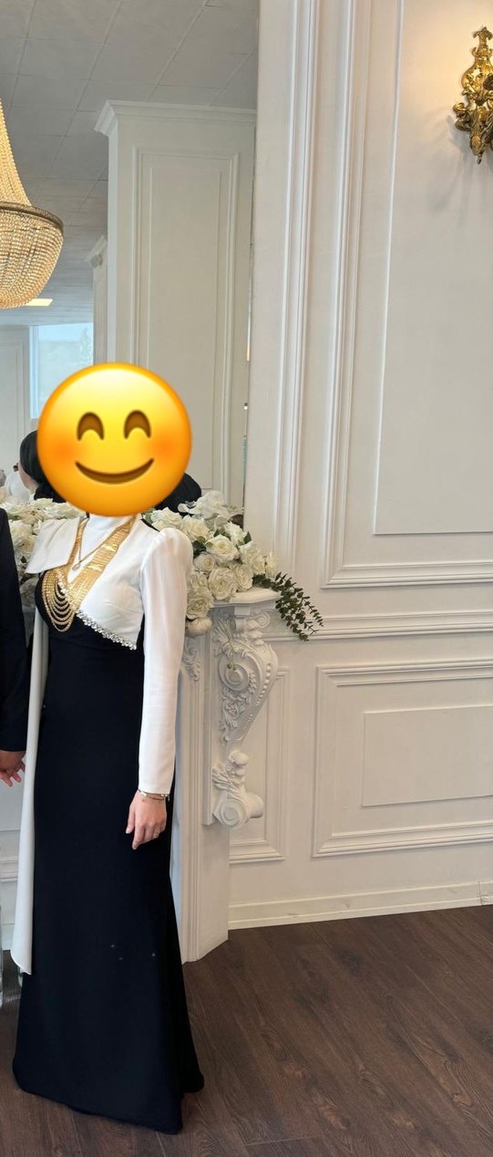 Uzun, beyaz ve parlak kumaştan yapılmış, etnik desenli, drapeli ve uzun kollu, halter yakalı, vücuda oturan kadın mezuniyet elbisesi. Parisli gotik stilini yansıtır.