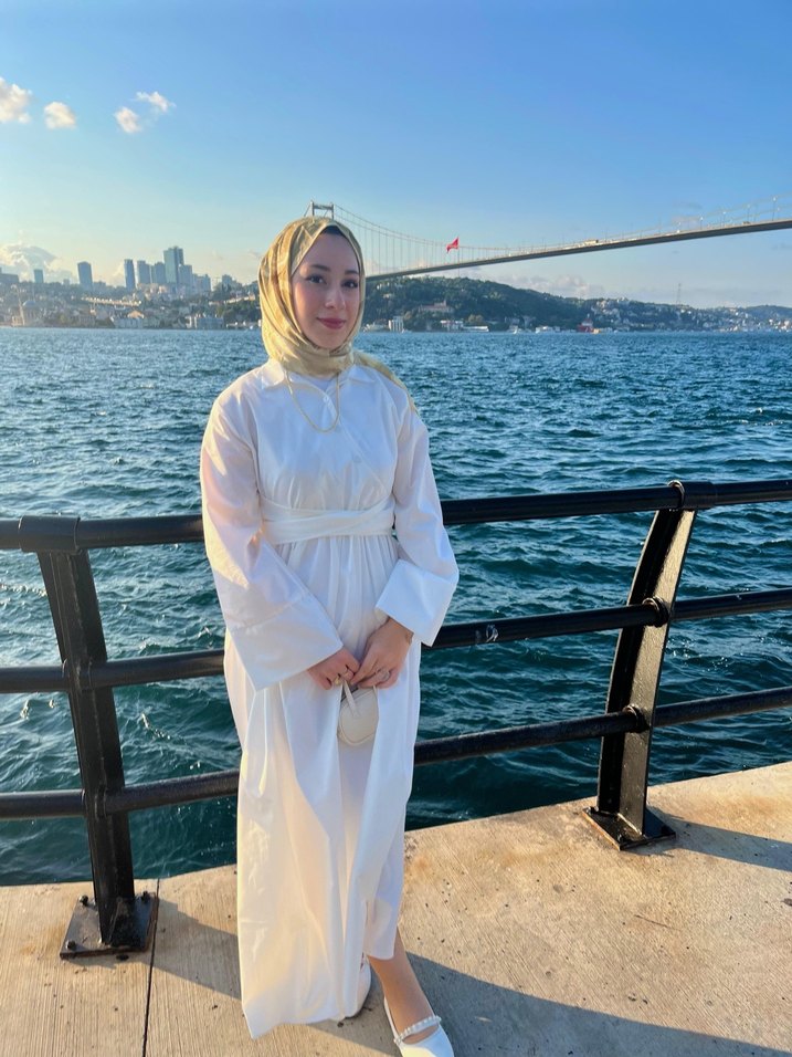 Uzun Beyaz İpek Görünümlü Salaş Elbise