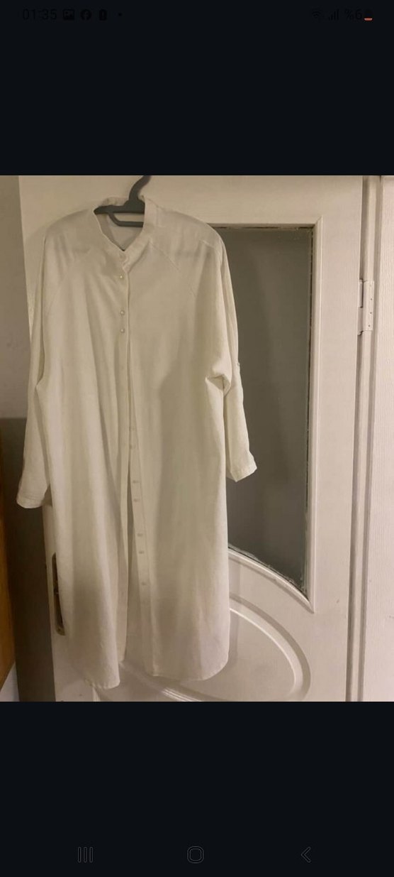 Uzun Beyaz Kadın Gömlek Elbise