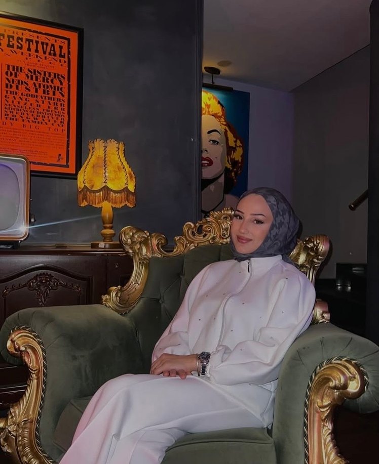 Tival markalı uzun beyaz kadın takımı, yüksek yakalı ve uzun kolludur. Dökümlü tasarımı ve etnik desenli, ipeksi kumaştan üretilmiştir. Düğün ve minimal tarz için uygundur.