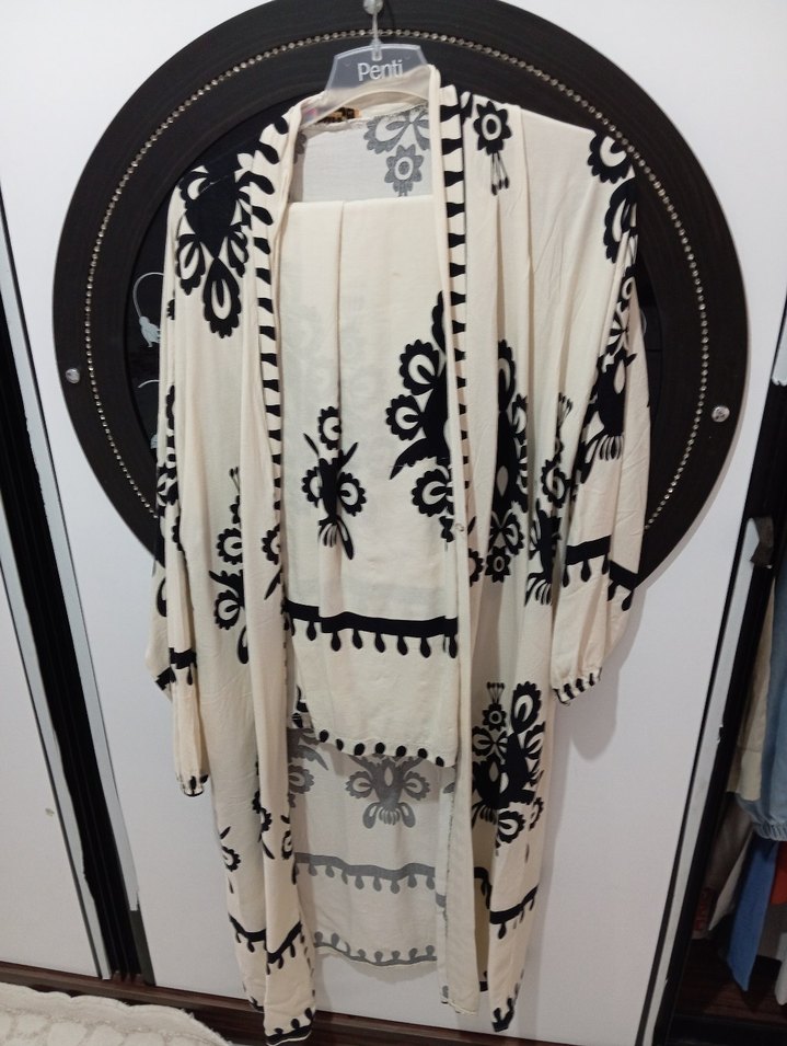 Uzun Beyaz Nakışlı Bohem Kadın Kimono