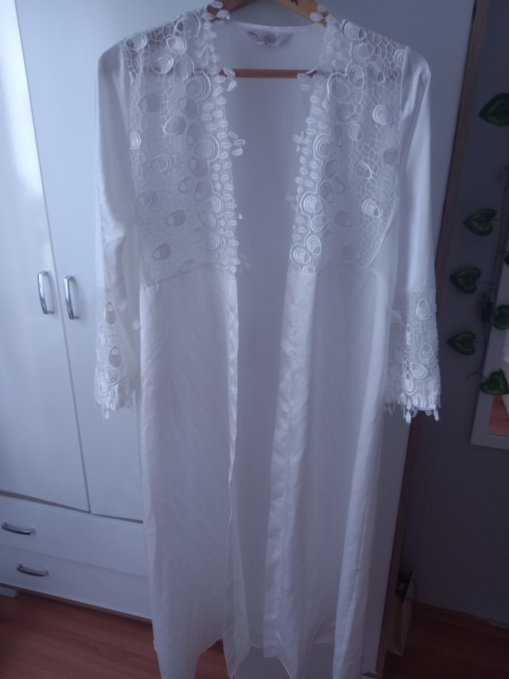 Uzun Beyaz Nakışlı Bohem Kadın Sabahlık 800tl