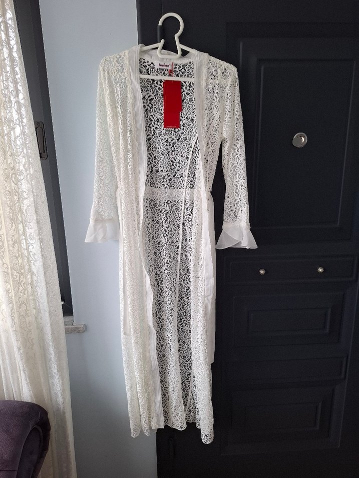 Uzun Beyaz Nakışlı Kadın sabahlık