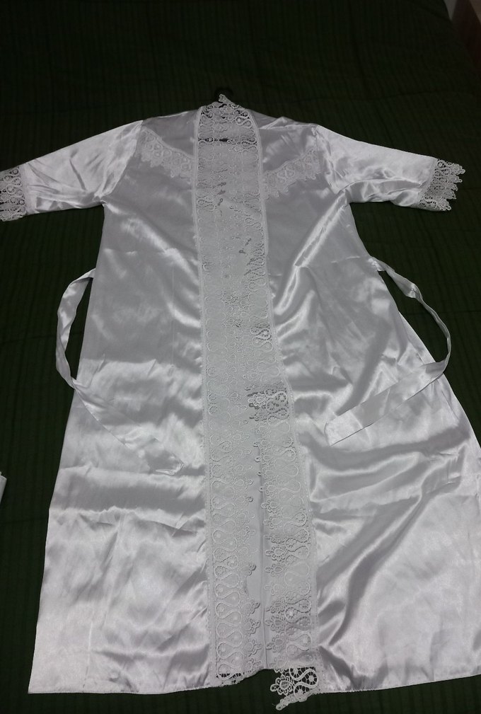 Uzun beyaz saten sabahlık, ön ve kollarda nakış detaylıdır. Askılı kollu, fitted kesim ve gotik tarzda, yumuşak ve parlak kumaştan yapılmıştır. #saten #Gecelik #sabahlık Not: Dolap temizliği nedeniyle uygun fiyata bırakıyorum ✅ Kargo: Hızlı gönderim yapılır