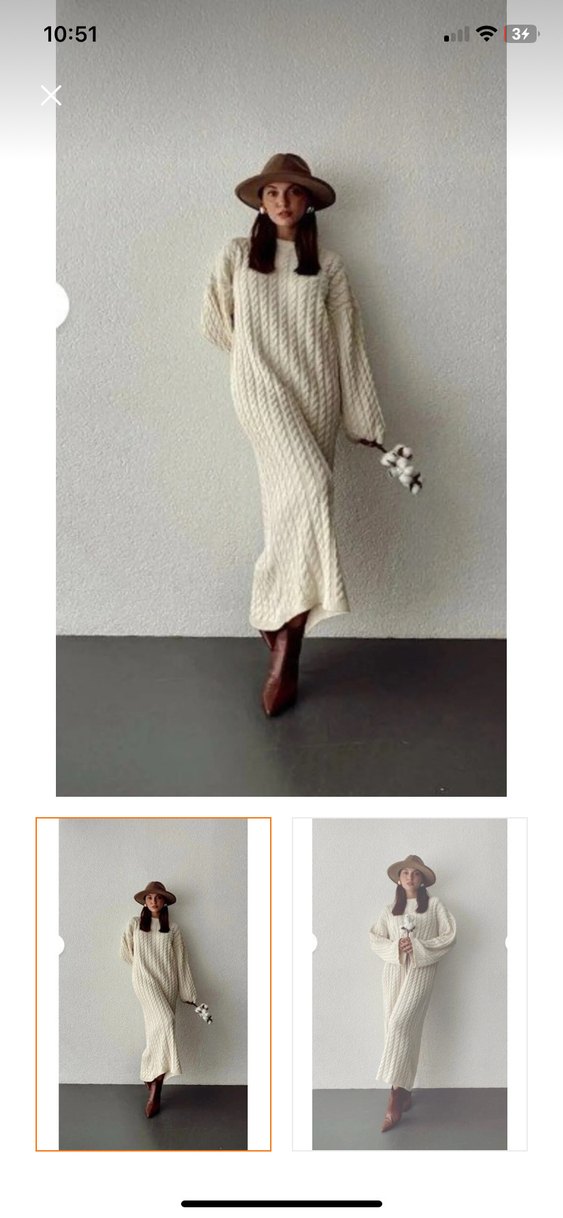 Uzun Beyaz Örgü Triko Elbise