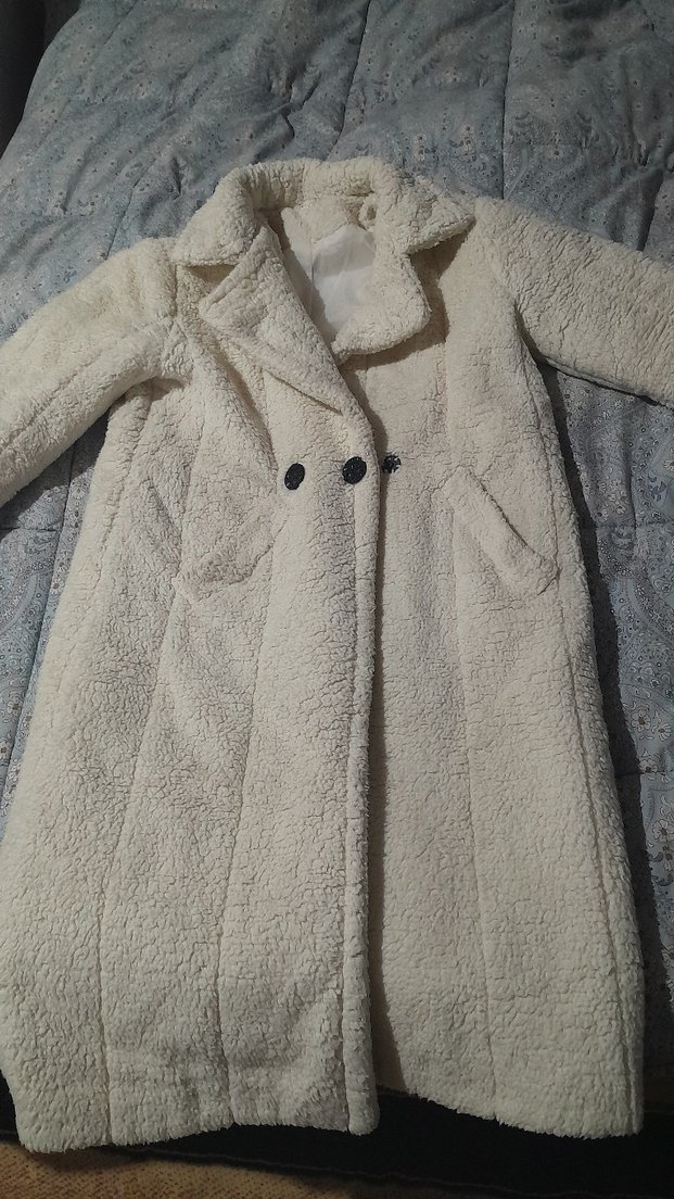 Uzun beyaz peluş kaban, s beden rahat ve günlük kullanıma uygun. ❄️
