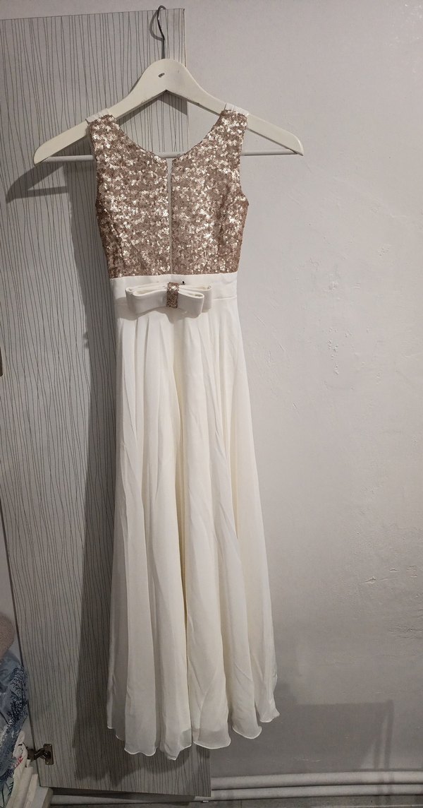 Uzun Beyaz Pullu Çocuk Abiye Elbise