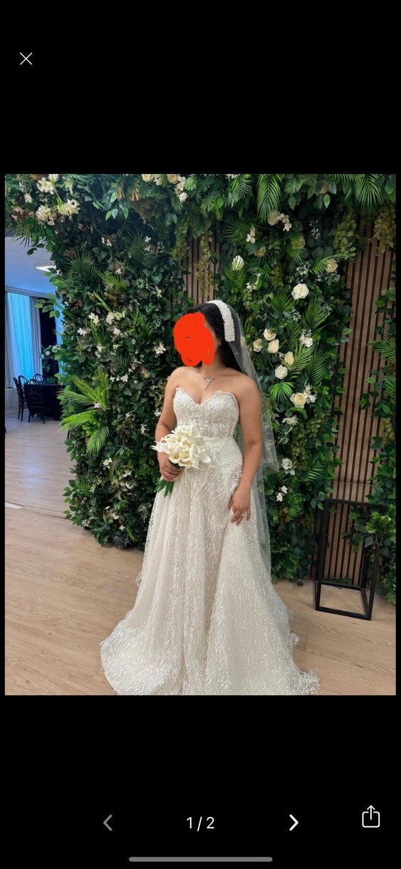 Bu uzun beyaz prenses gelinlik, straplez yakası ve ince askı detayları ile şık ve modern bir görünüm sunar. Klasik zarafeti yansıtır. 36-42 beden arasına uyumludur. Bana 36-38 beden demişlerdi ama ben 40-42 bedenim ve çok rahat oldu. Gelinliği tarlaransız kullandım daha rahat ve romantik bir görünüm olması için duvarı da özel diktirdim. Gelinlik dantel inci ve boncuk detaylara sahip