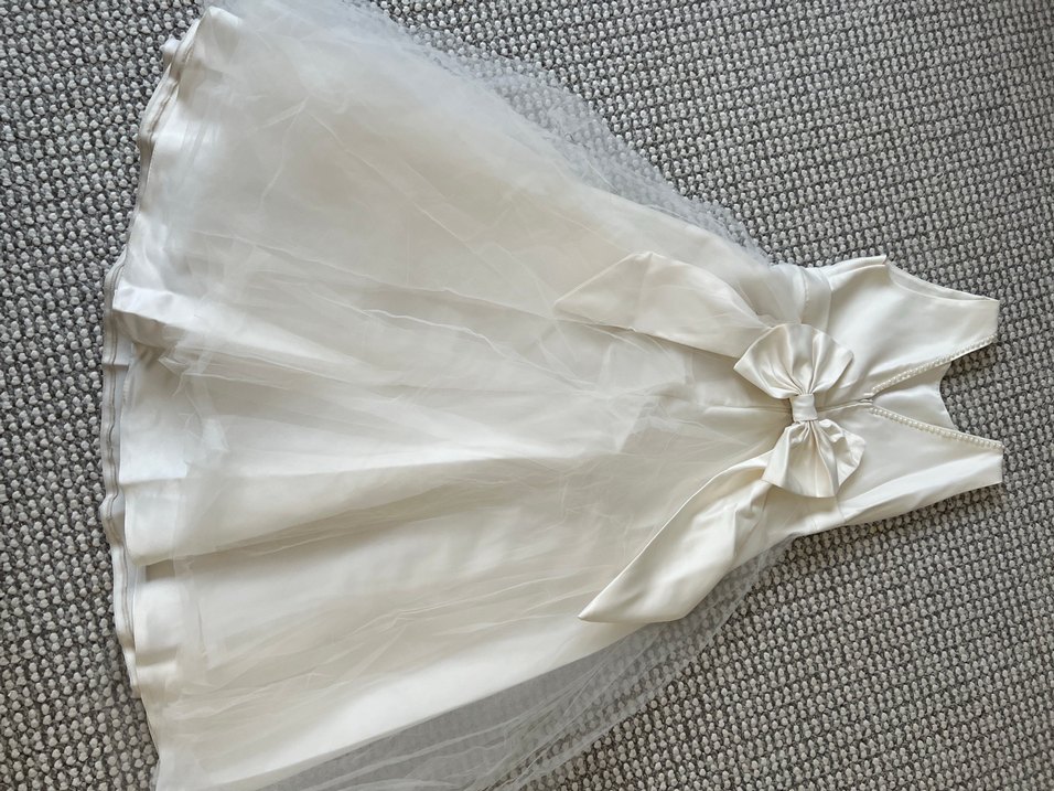Uzun, beyaz ve sıkı kesimli bu gelinlik, askılı straplez yakaya sahiptir. Modern klasik ve Paris tarzını yansıtan zarif bir tasarımdır. Bel 33cm, etek boyu 78 cm, elbise boyu 104cm dir. Hiç bir yerinde deforme yoktur