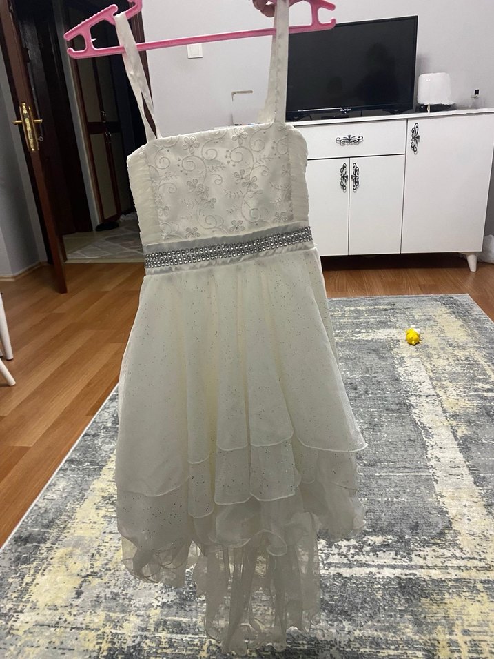 Uzun Beyaz Strappy Mini Gelinlik