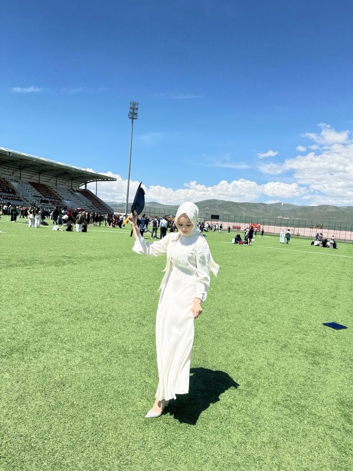 Uzun Beyaz Tesettür Mezuniyet Elbisesi