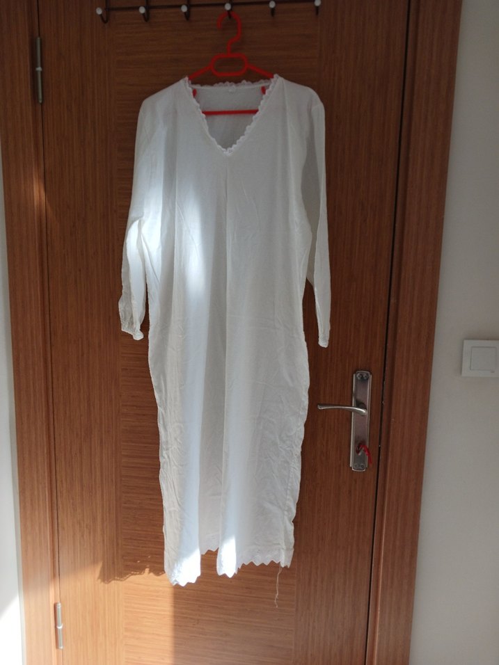 kadın beyaz V yakalı ve uzun kollu gecelik