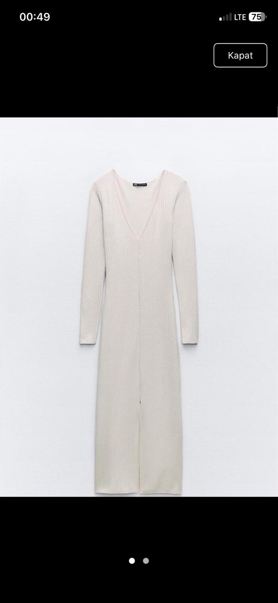 Uzun Beyaz V Yaka Triko Elbise