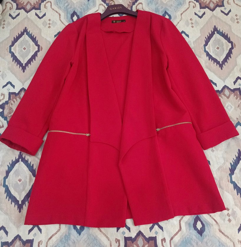 Sağ altta ufacık bir kül izi var üçüncü fotoğrafta elimde gösterdim belli bile olmuyor. Kullanıma engel olmaz. Tam kırmızı renktir. Kullanılmış bir üründür. Yırtık sökük yoktur. Bilek kısmı ve yaka kısımlarında tüylenme vardır, tüy toplama makinesi vb şekilde alınırsa yeni gibi olur. Bedeni olmadığı için satıyorum. Likralı krep kumaştır. Hem spor hem şık severek kullandım. 164 boyla kalçayı kapatıyor düğmesiz bir model. Yandaki fermuarlar dekor, cepsiz bir ürün. Ben 164 boy 65-75 kilo arasında kullandım. Likralı olduğu için kullanımı rahattır. ÜRÜN BİRLEŞTİRECEKSENİZ BİLGİ VERİNİZ
