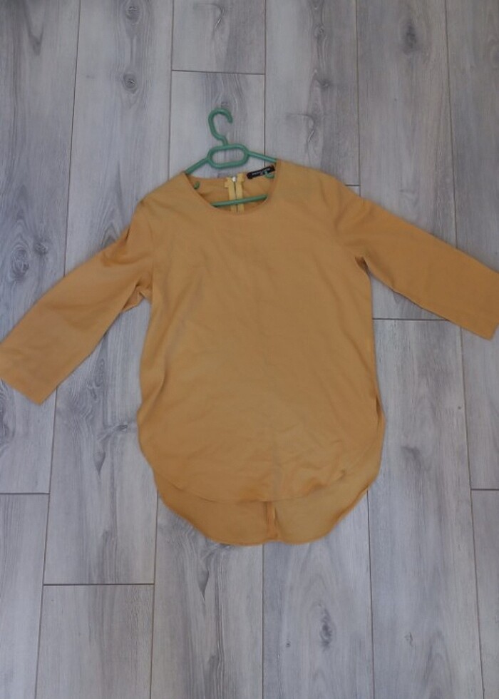 Sarı fermuar detaylı uzun bluz temizdir m bedene uygundur ütü ister kumaşa sahiptir