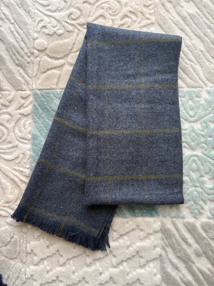 Gri lacivert tonlarda, örgü yünden yapılmış, püsküllü uçlu şalı. Bohem tarzda, zamansız ve rahat bir tasarıma sahiptir. Detaylarını fotoda gösterdim. Sıfırdır.