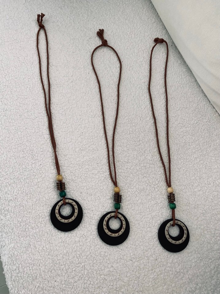 Uzun, bohem tarzda, koyu turkuaz boncuklar ve nakış detaylı kahverengi ipli kadın kolye. Günlük kullanım için uygun, retro ve hippie havası taşır. Belirtilen fiyat birtanesinindir.