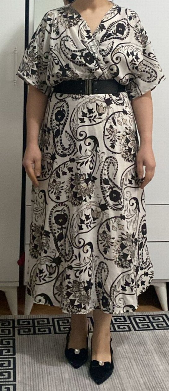 Uzun, bol kesim ve drapeli bu hamile eteği beyaz ve gri tonlarda bohem desenlere sahiptir. Günlük kullanım için uygundur.