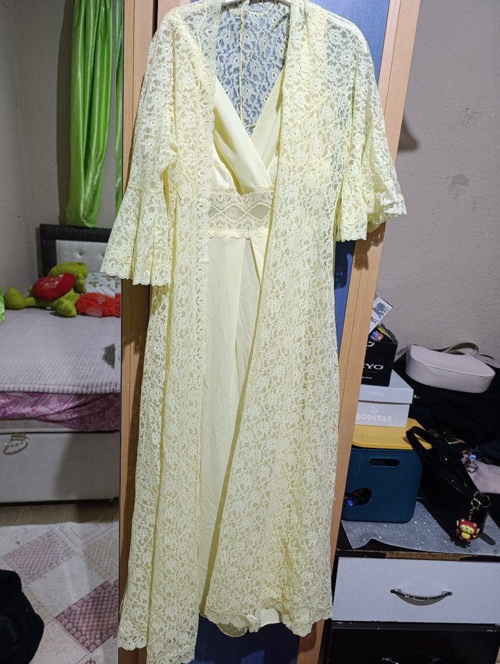 Uzun Bohem Kadın Beyaz Dantel Sabahlık