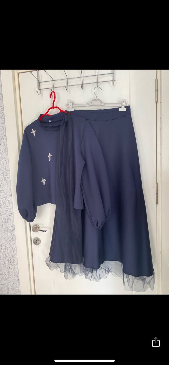 Uzun, bol kesim etek, drapeli, mavi