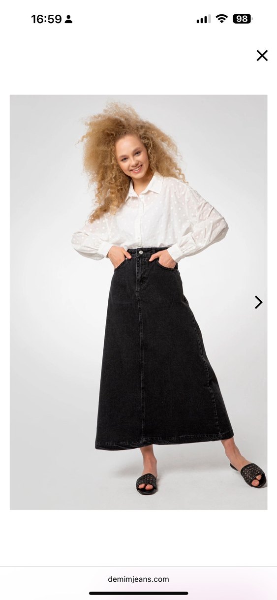 Uzun Bol Kesim Gri Batik Desenli Kot Etek