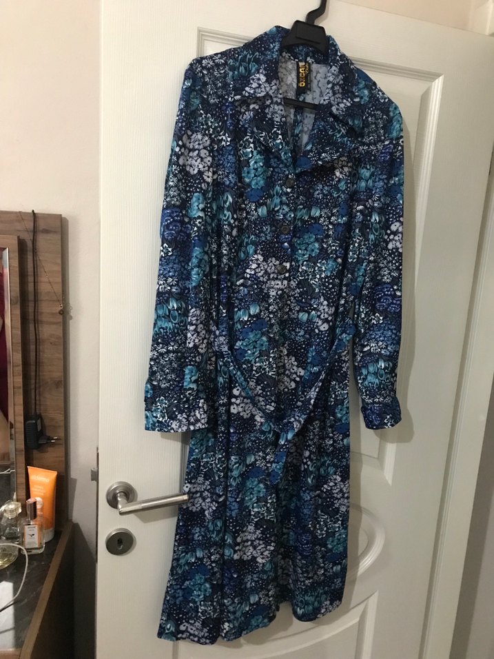 Uzun, bol kesim ve uzun kollu kadın elbise biraz açılma payı vardır hiç kullanılmadı sorunsuz