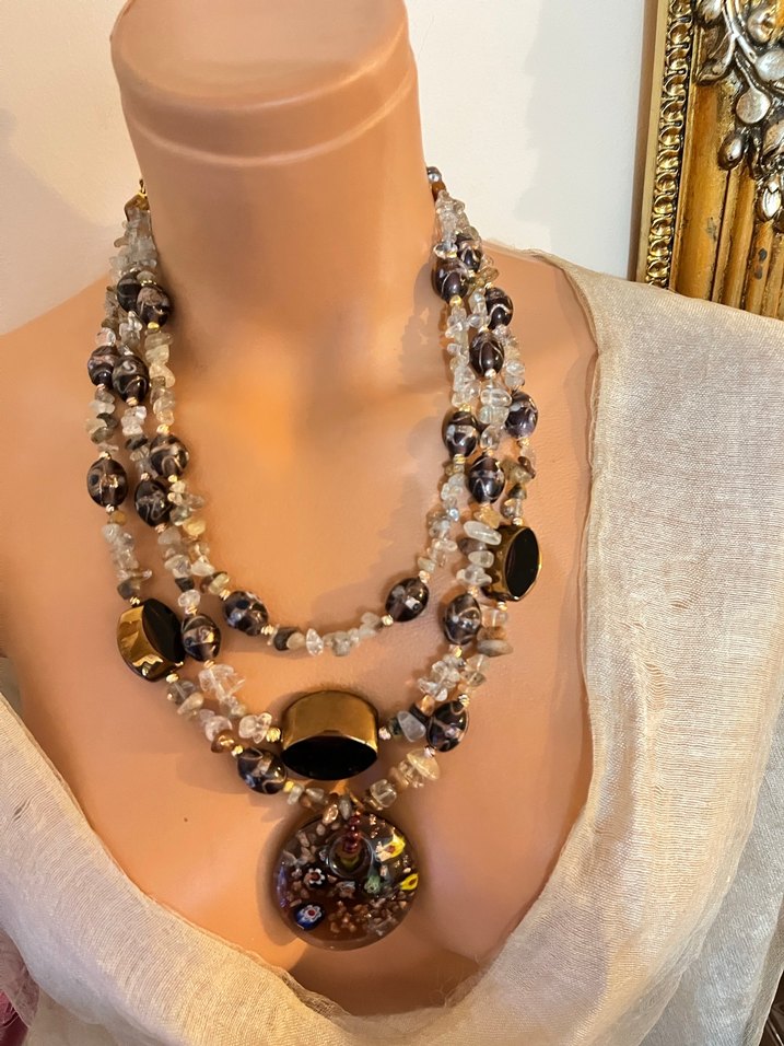 Uzun Boncuklu Altın Renkli Bohem Kolye