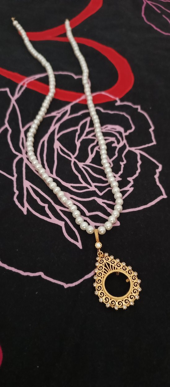 Parlak altın renkli, boncuklu ve işlemeli desenli uzun kadın kolyesi, günlük kullanıma uygundur. ✨