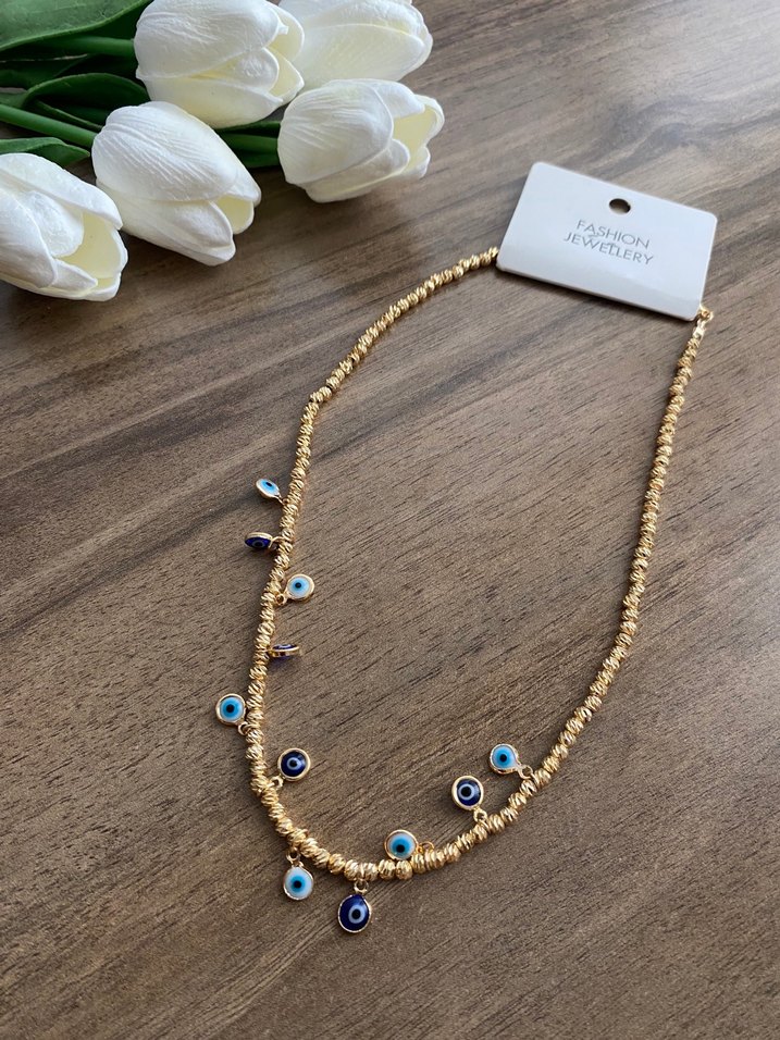 Uzun Boncuklu Altın Renkli Nazar Kolye