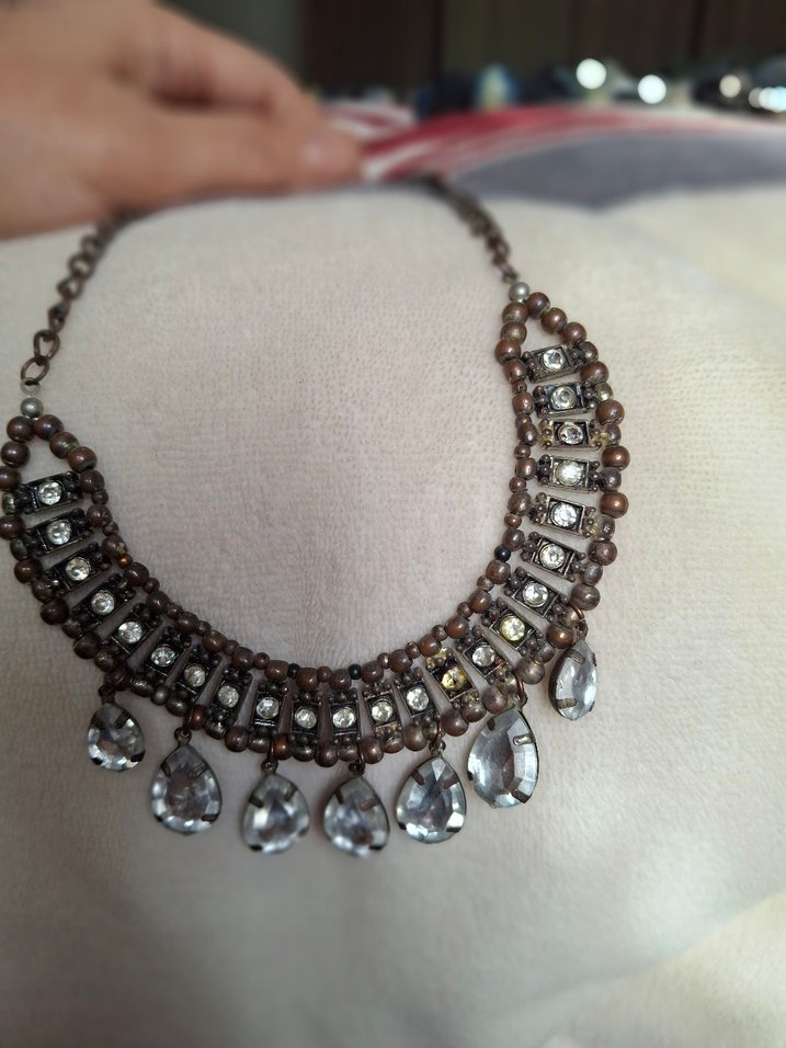 Uzun bej renkte, boncuklu ve nakış detaylı, bohem vintage tarzda günlük kullanıma uygun kadın kolye.