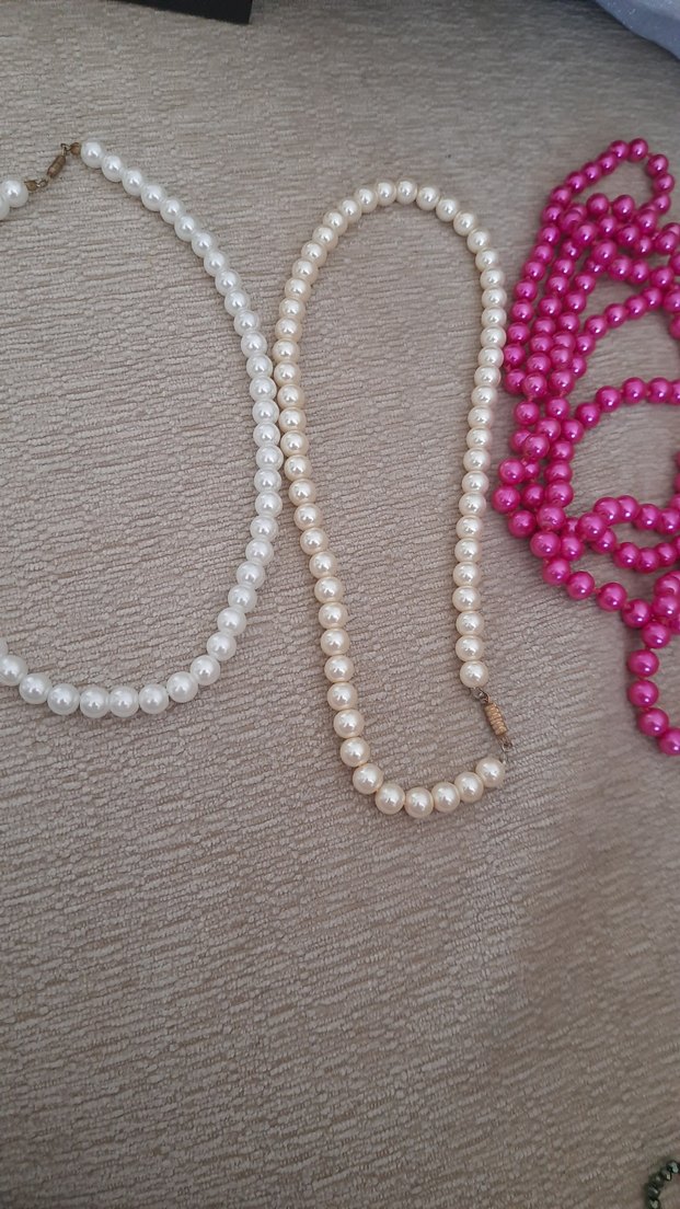 Uzun Boncuklu Pembe Nakışlı Kadın Kolye