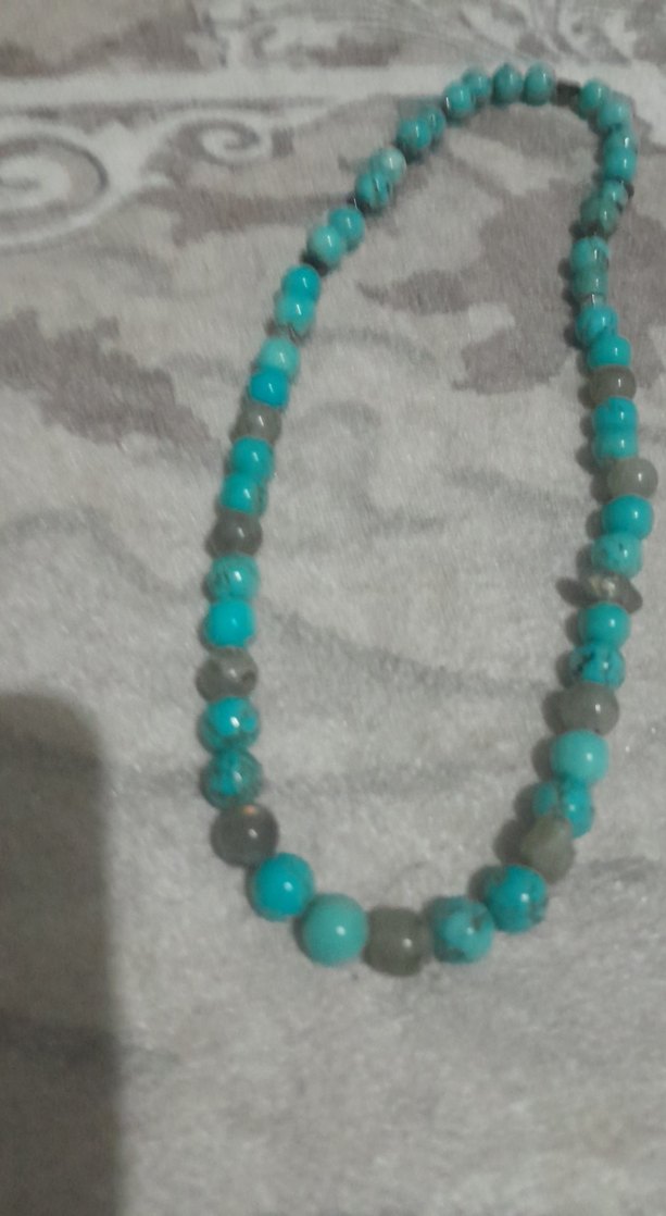 Uzun TURKUAZ ve LABRODORIT minimal bohem tarzda kadın kolyesi, günlük kullanım için uygundur.