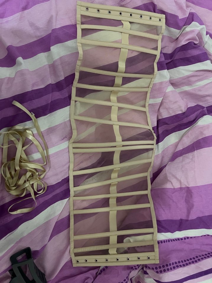 uzun boy ve sıkı oturan yapıda, desen içermeyen şeffaf yapılı korse.