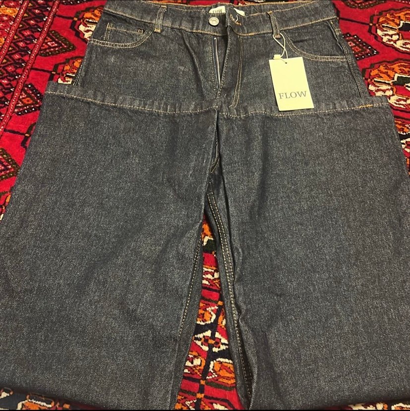 Gri renkli, bol kesim, fermuarlı kadın kot pantolon. Günlük kullanıma uygun, retro tarzda rahat bir model. Hiç kullanılmamıştır