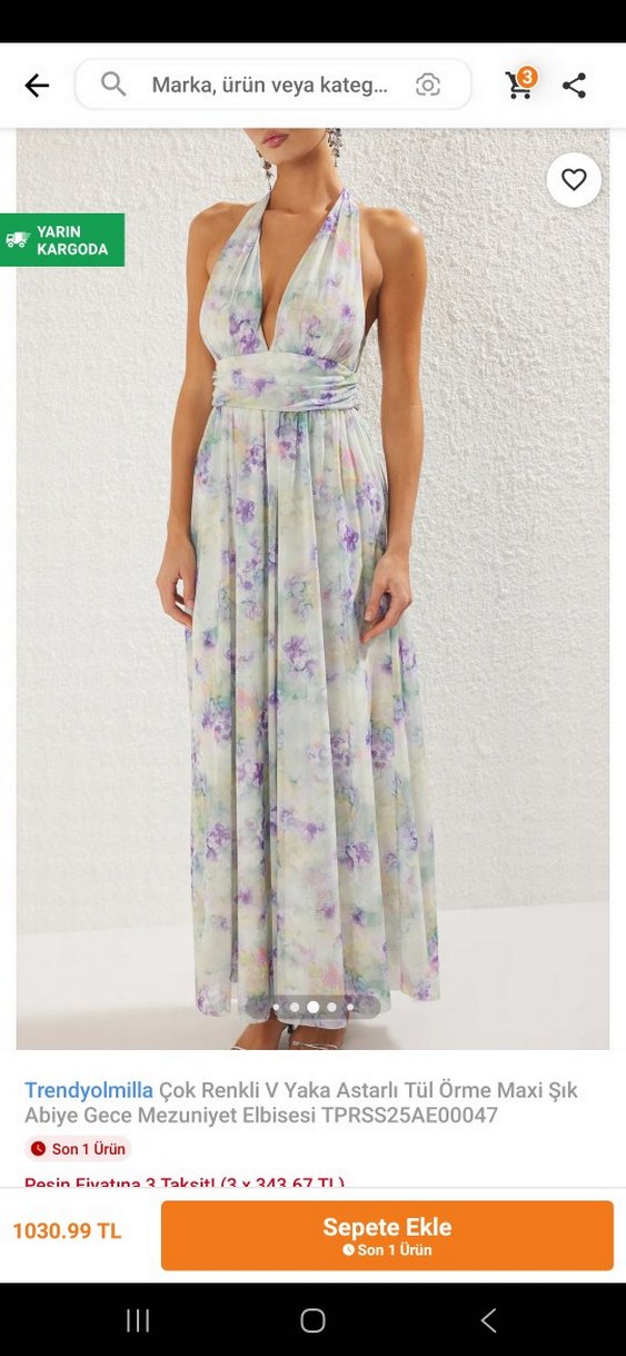 Boyundan bağlamalı, astarlı, çiçekli abiye L beden 9 aylik hamileyken arkadaşımın nikahı icin almıştım. sadece 1 kez giyilmiştir. herhangi bir kusuru yoktur.