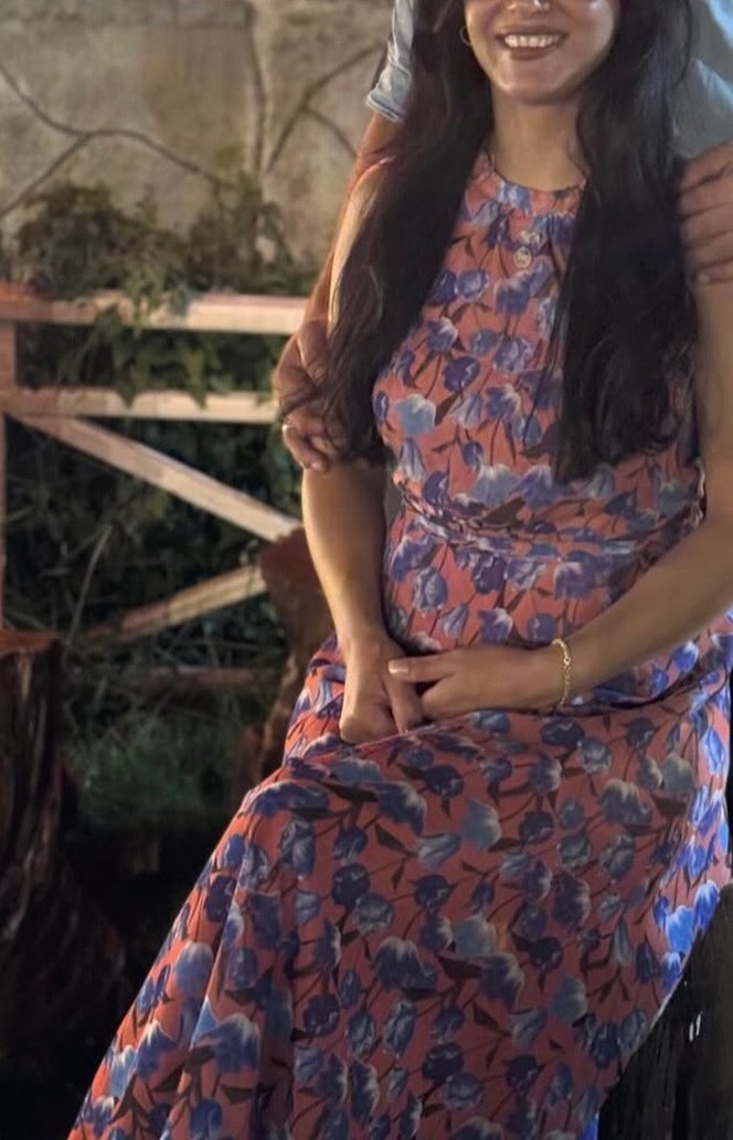 Uzun Büzgülü Bohem Desenli Hamile Elbisesi