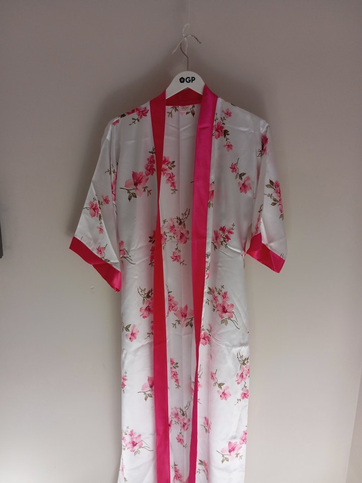 Uzun Çiçek Desenli Pembe Kadın Sabahlık
